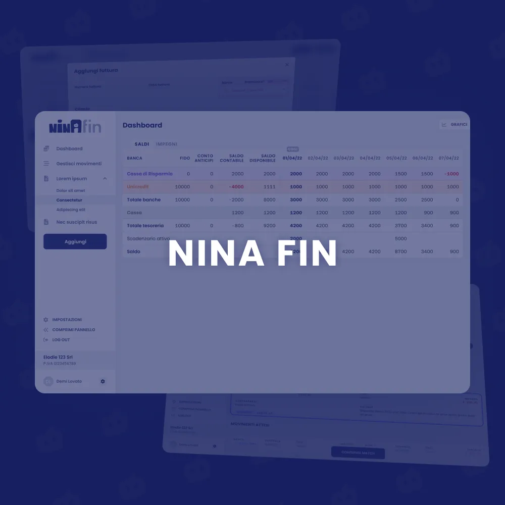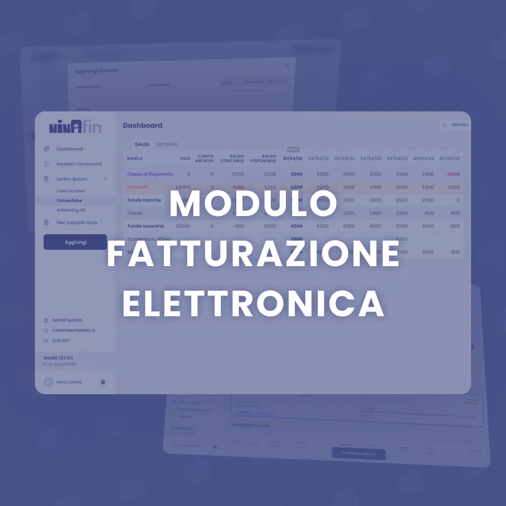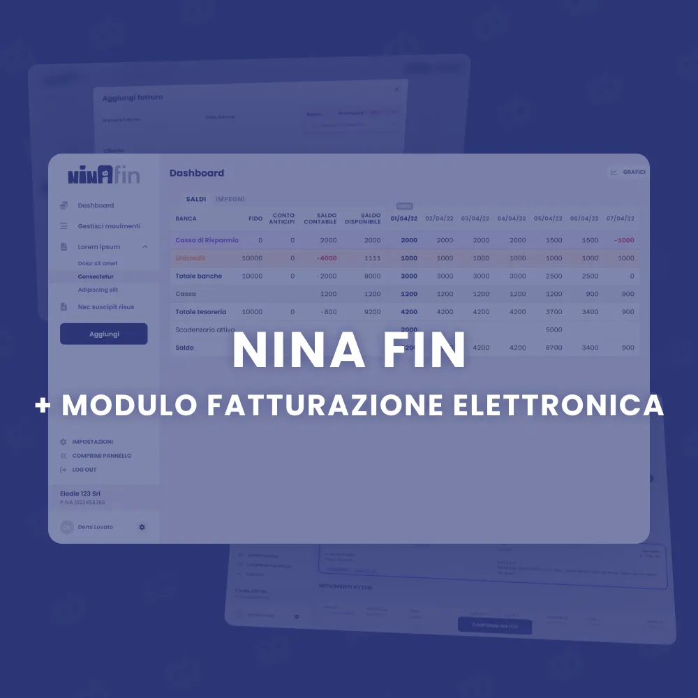 Con Nina Fin puoi caricare le fatture elettroniche attive e passive, scaricarle dal cassetto fiscale (coming soon) o collegare il pacchetto opzionale Fatturazione Elettronica per emettere e ricevere le fatture elettroniche direttamente dal sistema.